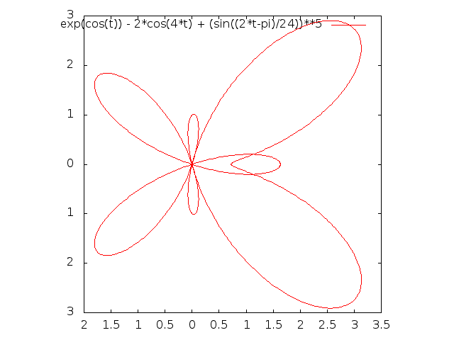 plot exp(cos(t)) - 2*cos(4*t) + (sin((2*t-pi)/24))**5